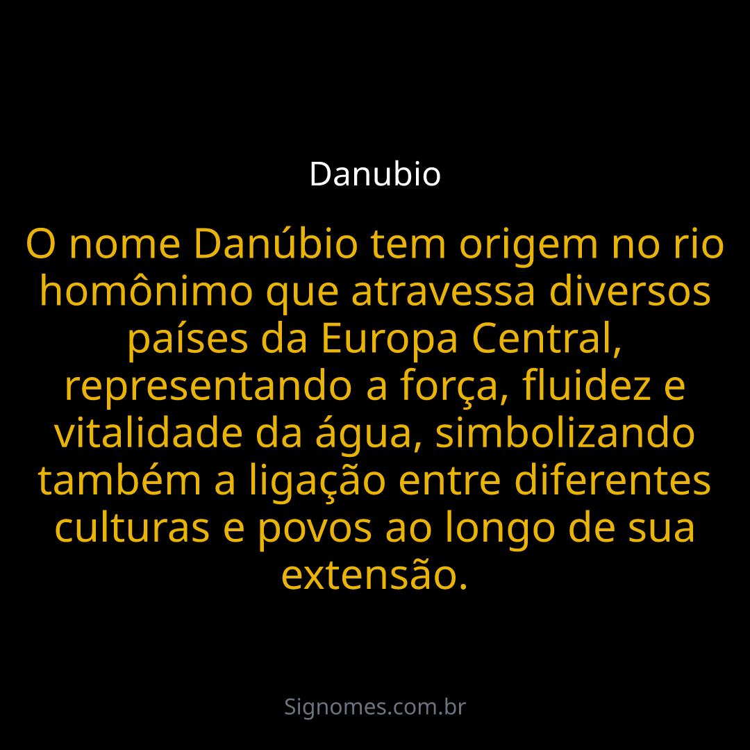 O nome Danúbio tem origem no rio homônimo que atravessa diversos países da Europa Central, representando a força, fluidez e vitalidade da água, simbolizando também a ligação entre diferentes culturas e povos ao longo de sua extensão.
