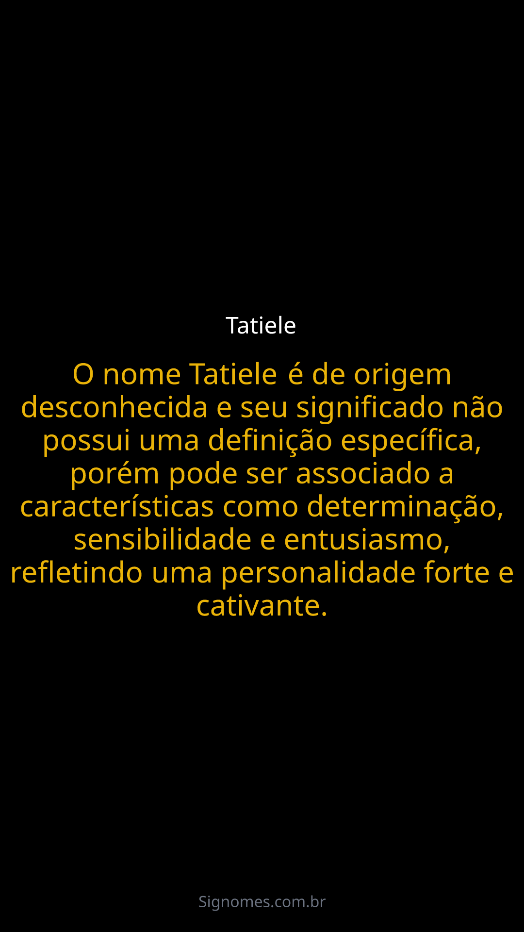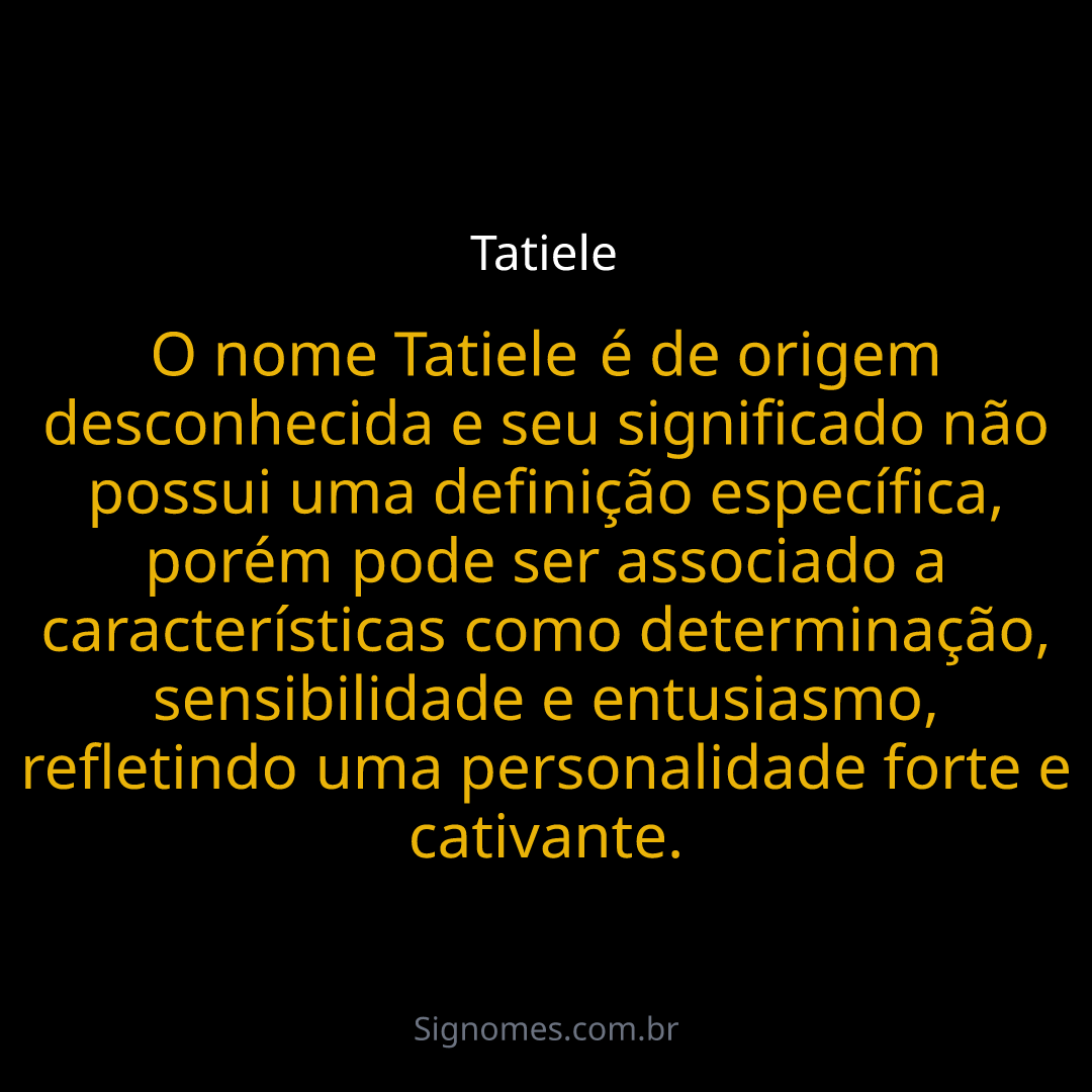 O nome Tatiele é de origem desconhecida e seu significado não possui uma definição específica, porém pode ser associado a características como determinação, sensibilidade e entusiasmo, refletindo uma personalidade forte e cativante.